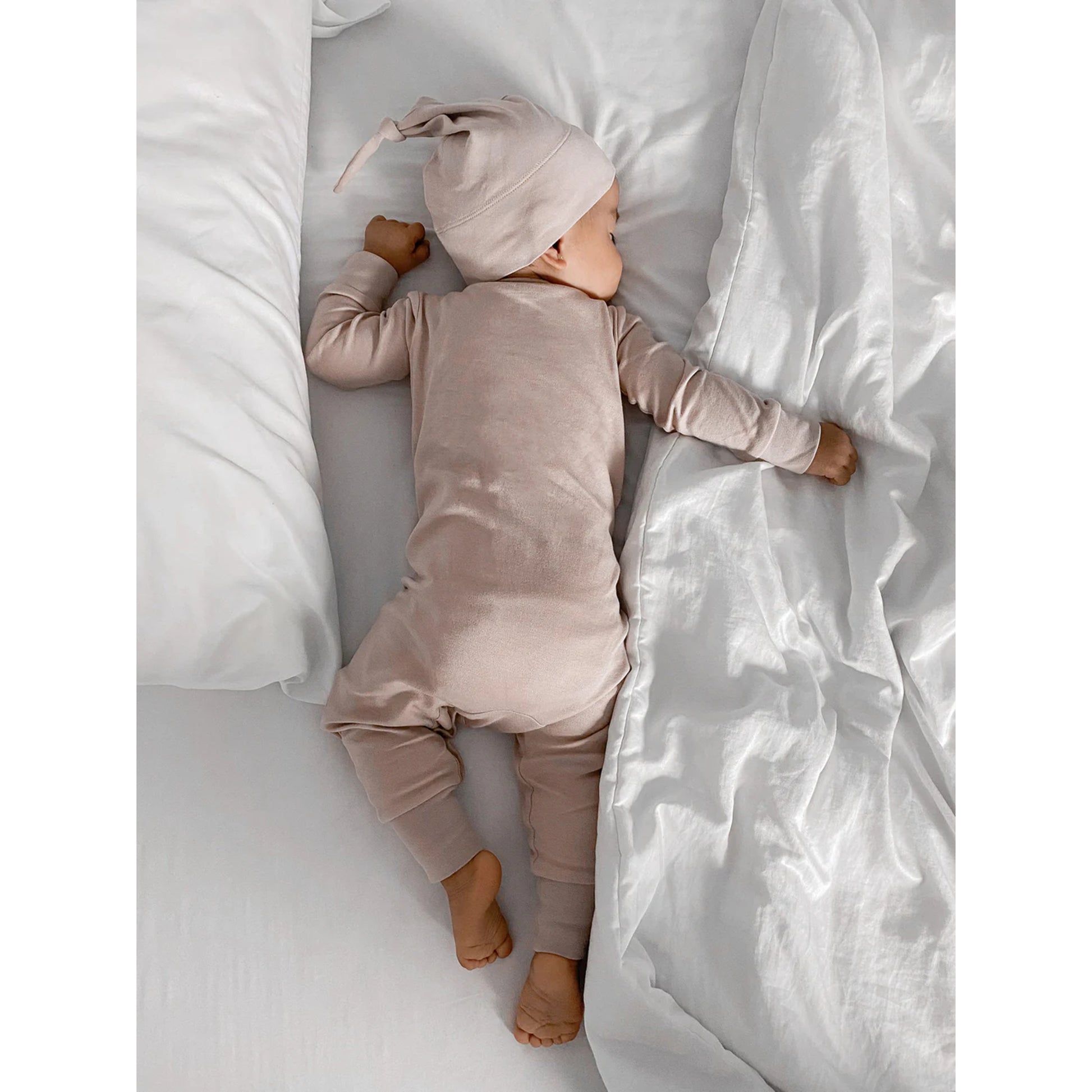 This organic knotted hat is a newborn necessity. The lightweight organic jersey will keep your baby comfy and cozy all year round and should fit snuggly to keep baby's head warm.