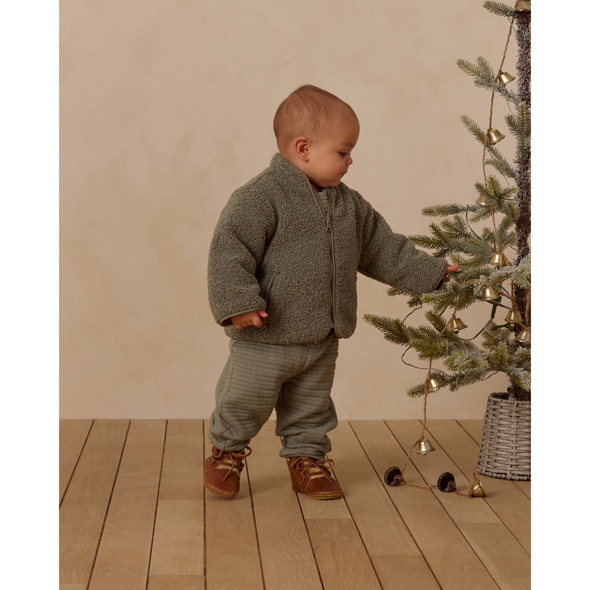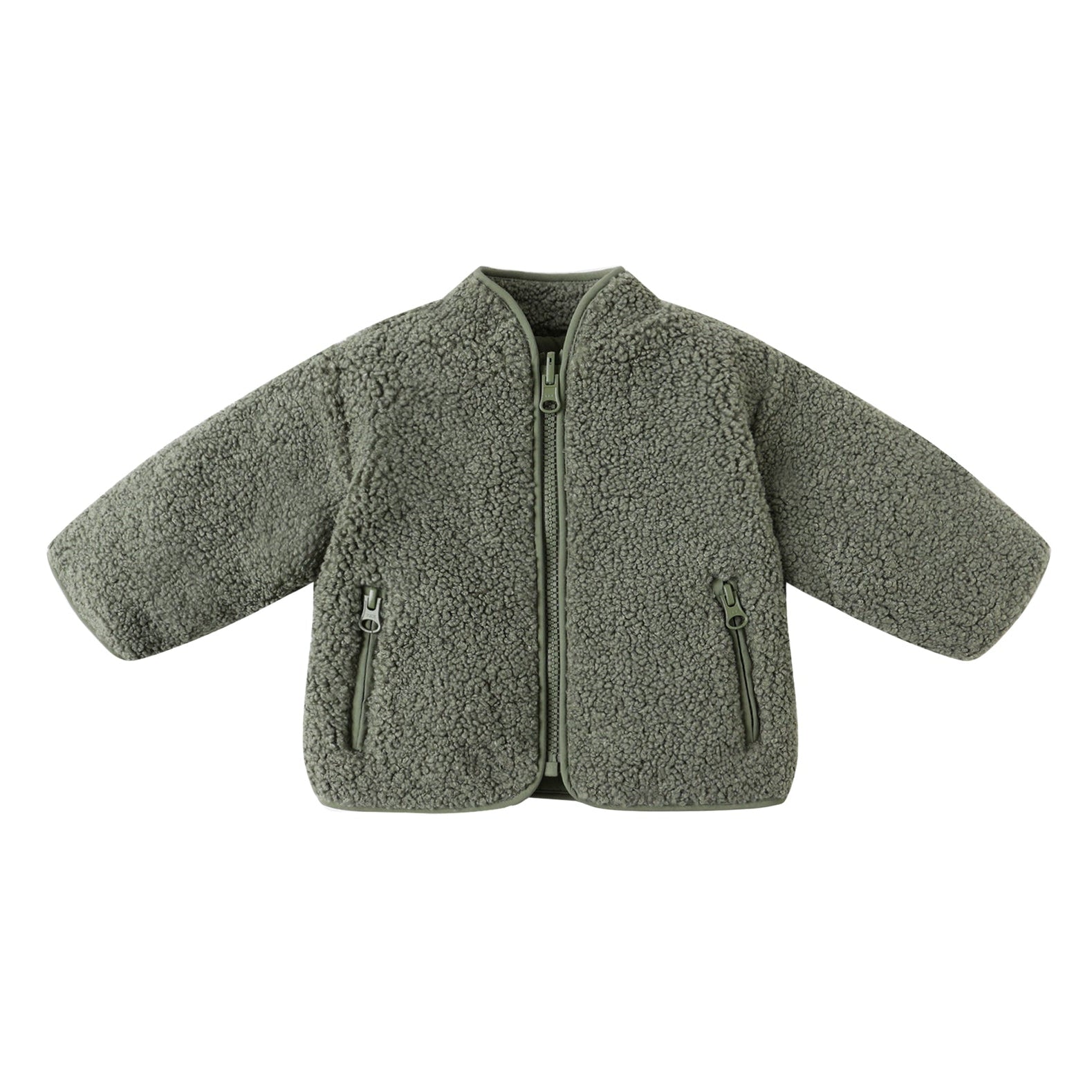 Keep your little ones warm and cozy with this shearling zip-up jacket. Zipper along the center front, and it is also reversible. With functional front zippers as well.