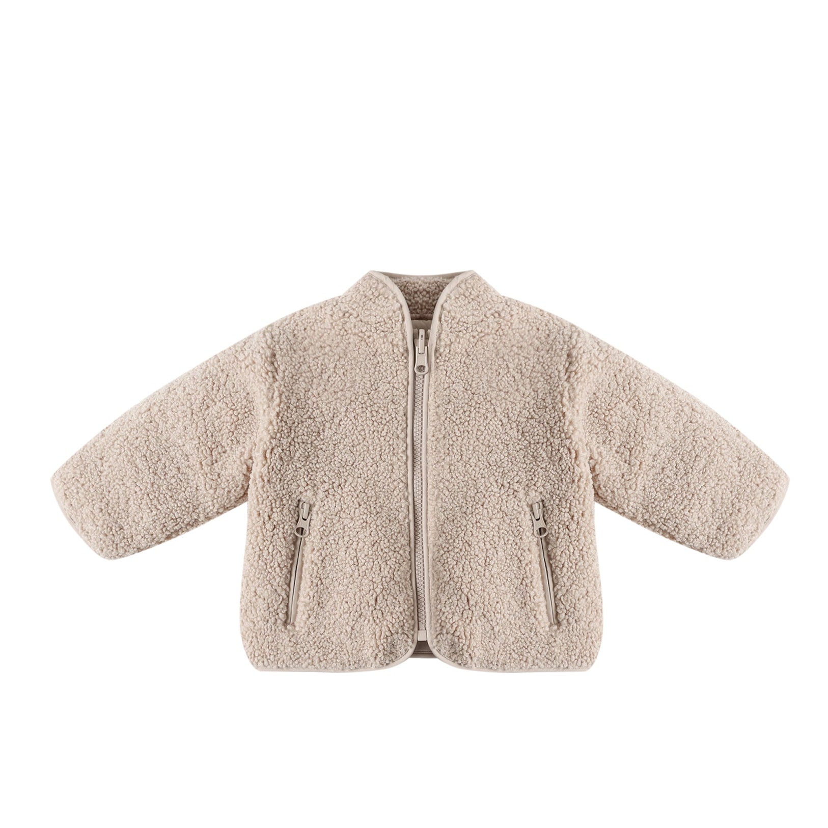 Keep your little ones warm and cozy with this shearling zip-up jacket. Zipper along the center front, and is also reversible. With functional front zippers as well.
