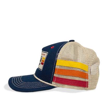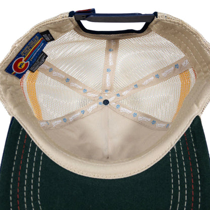 This throwback style hearkens back to the 70’s when trucker hats were first making their way into American culture. It features a heavy duty constructed cotton twill crown, soft vintage mesh, and sewn fabric bands on each side, a slightly curved bill, and adjustable snapback.